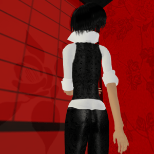 I wore a skin with very light makeup, going along with the boyish theme. This skin is also her creation and gives me a cool look overall. And for shoes, I wore only the lower parts of a short ankle boots so it won’t interfere with the prim pants parts at the bottom.