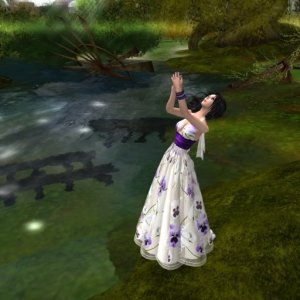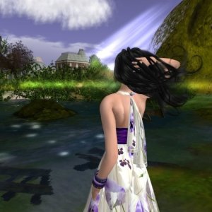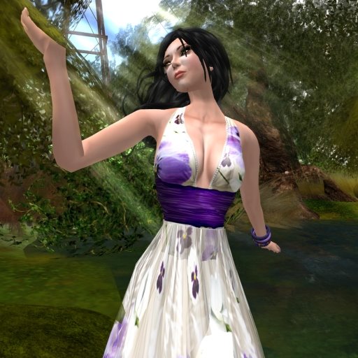 So today, I have the Floratta Long Dress with pansies. This is a rare long dress here as most of the outfits are short but not rediculously short as a lot of the outfits in SL are. I must admit, I really don’t like the short short prim skirts that spread out like ballet costumes. Maybe it’s because I saw too many of these as a newbie. They just look unreal and unnatural.