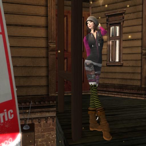 One of her creations is this hoodie that comes in 5 colour variations and it can be worn by both male and female avatars. I have matched it with a sweet short denim pants and fun socks from sey and a white pair of moccasin boots from 69. The cap is also from Japan. “Argrace” is an already fairly well-known store among the non-Japanese SL residents as one that has quality items in not only clothing but hair and even furniture. The cap comes with the hair and Argrace has different hair as well as cap designs, again for both male and female avatars.