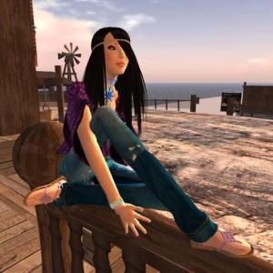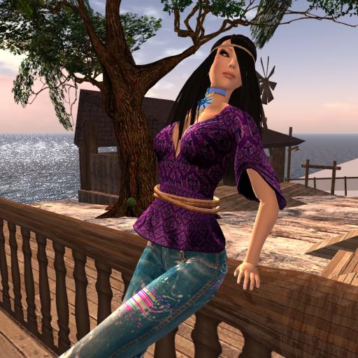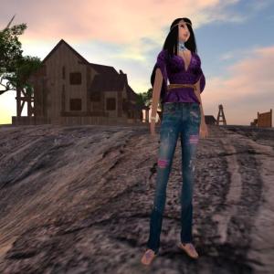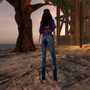 I tried several different pairs of jeans but this one from Jador Fashion that had some pink based colour in it seemed to work better to create a “flower children” look. And of course, I had to use this hair from Lelutka with a head band (or rather….string?) and my shoes had to be flat sandals. I found these sandals in my inventory which fit my image perfectly but unfortunately, I had bought them a long time ago which was way before I even thought of starting to blog. So I never cared that a landmark was missing. And now, I can’t even remember where I got these sandals from. Damn. I would be grateful if any of you who might be reading this might know where these came from and let me know. I even tried searching with the name I saw on the folder but I had no success. 😦