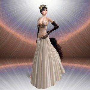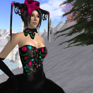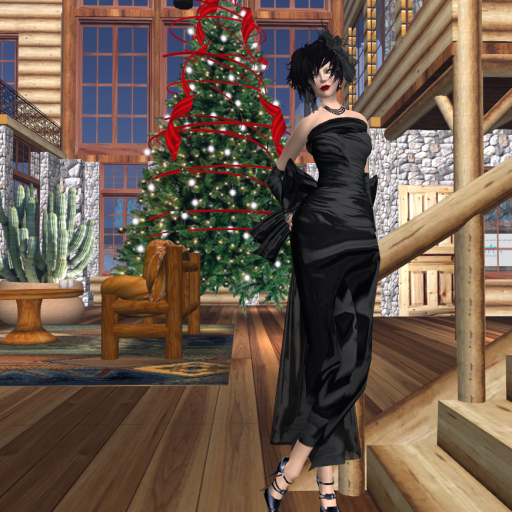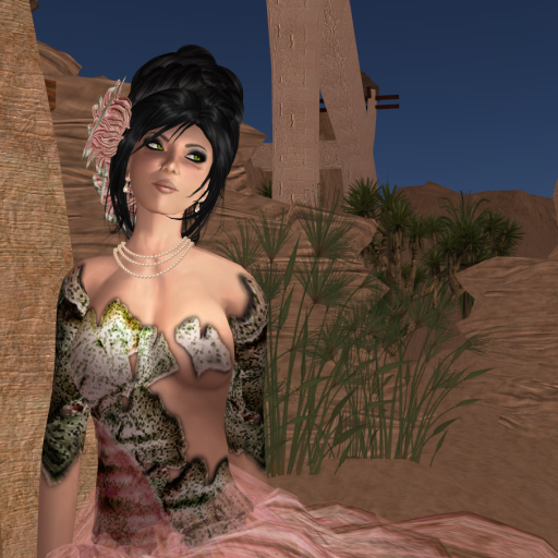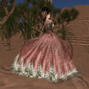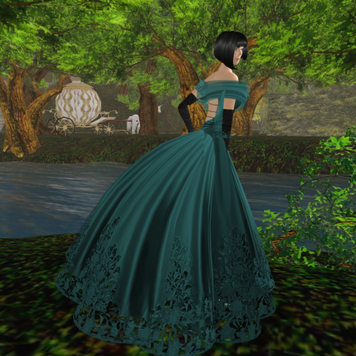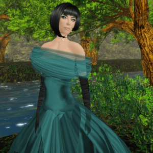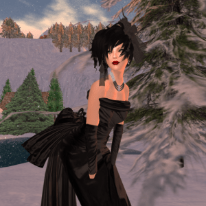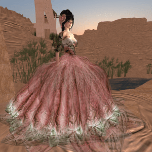 She released a gown with a slightly different image recently called Roxanna and now she even released some casual wear! I will show the casual outfit in another blog post and today I have “Roxanna” which is a cool black gown with a thick leather belt around the waist and a sheer scarf that drapes down the back from both shoulders.