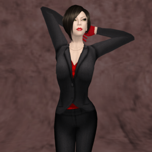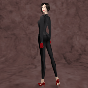 For the black suit, I wanted a very sharp look with red as the focal colour. So I wanted some short red gloves but I couldn’t find the right colour and style so I quickly made my own. It’s not hard. Just go into appearance, click on gloves, make new outfit, choose the length, texture (if you have any appropriate ones but don’t worry if you don’t) and colour. Voila! You have your own red gloves. I also added red with the tiny bit of shirt that shows from underneath the jacket as well as my lips and shoes.