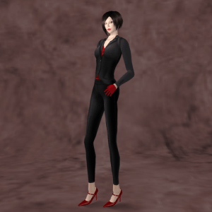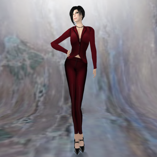 As for the red suit, I added a bit more softness overall in my choices. I still like my hair short but the one I am wearing with the red suit is a bit more round and soft. I also wore a lingerie bustier from Angel Dessous instead of a shirt since all you’ll see is the lace part and it conveniently exposes a bit of my tummy. 😛 With a belly button showing, I might want to add a belly ring here but then I remembered. This is styled as a formal wear. So in thit case, no belly ring. I often see people who will wear belly rings whenever their belly buttons are exposed but belly rings are also a jewelry piece and you want to be selective when it will be better to have one or not. Another thing I kept in mind was to not add too much red. The suit is red already so too much red becomes an over-kill. So here, I chose a sharp looking makeup with pale lips and pale red nails too. The shoes I chose is also a sharp looking pair as in the black suit but this time, a plain black pair.